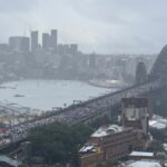 Avustralya'nın ünlü Sydney Harbour Köprüsü'nde onbinlerce kişi şiddetli yağmur altında "Soykırımı durdurun" "İnsanlık Gazze'yi koru" pankartlarıyla bir araya geldi.
